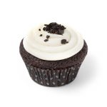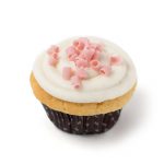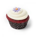 Velvety French chocolate cupcake covered in refreshing raspberry cream cheese made from organic fruit preserves and topped with an edible heart fondant.