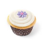 A buttery cake made with Madagascar Tahitian vanilla and topped with a sweet vanilla bean buttercream frosting and pretty fondant topper.