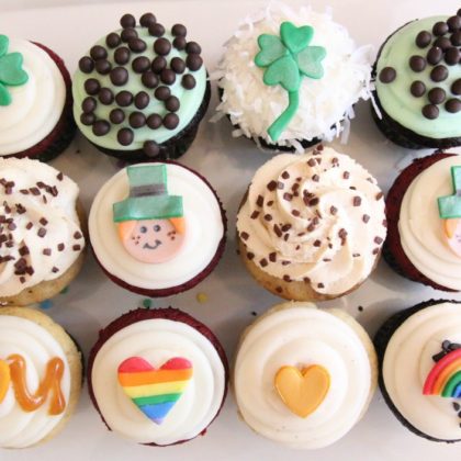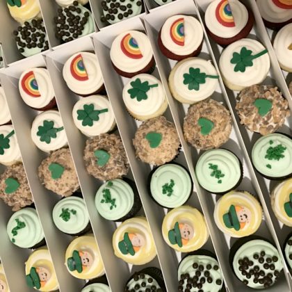 • Festive St. Patrick’s Day decorations in our fresh baked cupcakes